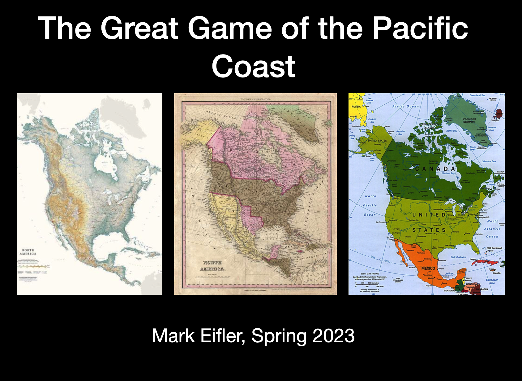 The Pacific Coast of North America was claimed not only by many different native peoples who lived there, but after 1750 by Spain, Russia, Britain, the United States, and Canada. How the struggles between these groups led to the west coast as we know it today is the subject of this presentation.